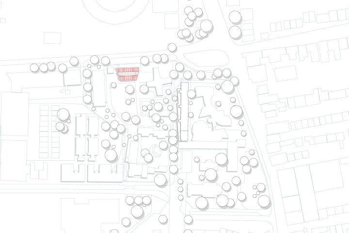 Zusammen mit dem Kreuzbau und der Turnhalle bildet der Neubau den städtebaulichen Abschluss zur Hallerstraße, der wichtigen Ostwest-Verbindung zwischen Grindel und Alsterpark.